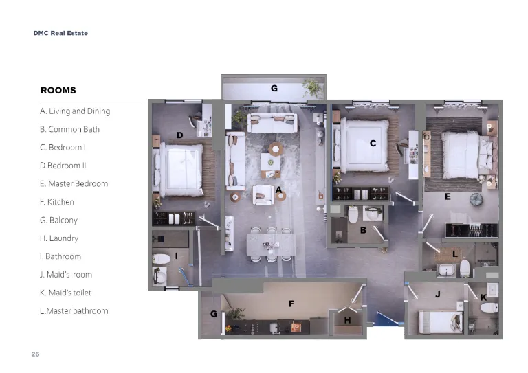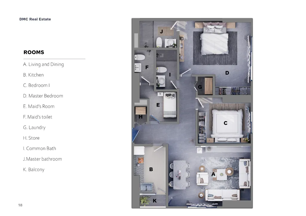 The three bedroom apartments, which offer spacious living fora happy family, combine the convenience of roomy bedrooms and a peaceful master suite with a roomy living and dining space where life happens and tenants may spend quiet nights or entertain guests. The customizable areas may be used for a variety of purposes. For individuals who want to nature and enjoy outdoor areas, there are optional features like helper’’s quarters, closed kitchens, and private balconies. Ideal for couples or families that value the luxury of extra room and adaptable design.